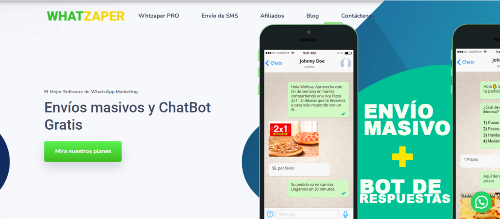 - Whatzaper PRO tiene un chatbot que puedes configurar para responder a las preguntas más frecuentes de tu audiencia. Cuando envíes un mensaje masivo y ellos hagan una pregunta de interés (horario, precio, ubicación, etc), recibirán una respuesta inmediata de tu parte.
